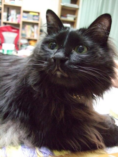 飼い猫のロナ(長毛黒猫、推定14歳)※2019年12月逝去